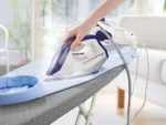Features: for steam and dry ironing. High-quality aluminium alloy sole with ceramic coating for optimal lubricity. Vertical steam function. Variable adjustable permanent steam (Vario steam). Ready to use in just 90 seconds. Locking system for easy transport. 1.8 litre water tank – can be used during the B. removed and filled Base station with soft-touch control panel and heat-resistant storage area. Eco and maximum mode – selectable via station. Replaceable anti-limescale filter and “anti-calc” reminder at the station. Steam hose: approx. 170 cm (L), windable. Temperature adjustable via rotary knob. Temperature range: level 1: 70-120 °C. Level 2: 100-160 °C. Level 3: 140-210 °C. Technical data. Power consumption: max. 2400 W steam boost: approx. 350 g/min. Steam pressure: approx. 5 bar. Vario steam quantity: approx. 130 g/min. ECO mode: approx. 70 g/min. Material: plastic, aluminium. Dimensions of station without iron: 35.6 x 20.2 x 20.5 cm. Iron: 27.2 x 12 x 14.3 cm. Sole: 22.2 x 12 cm. Power cord: 185 cm. Connection cable station iron. Iron: 170 Weight: approx. 3370 g